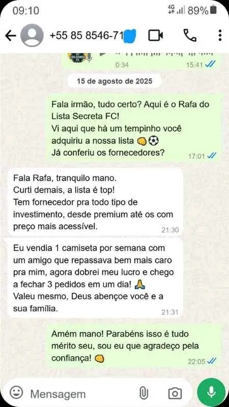 Foi por isso que eu criei uma lista exclusiva com mais de 50 fornecedores secretos de camisas de time, todos testados e aprovados. Fornecedores que realmente entregem, camisas a partir de R$ 24,90, alguns sem exigir CNPJ e prontos para vender por até R$ 129,90 fácil dependendo da sua região.